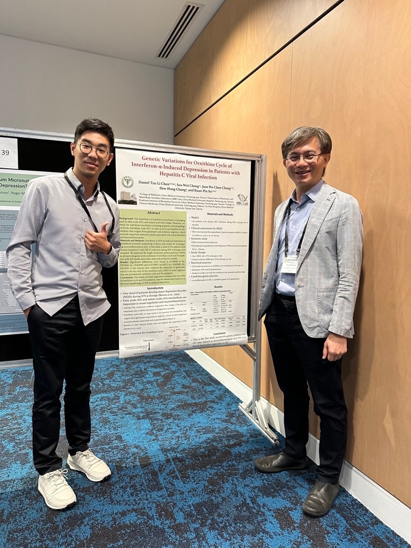 本文作者中國醫藥大學陳子力博士生(左)與本會創會理事長蘇冠賓教授(右)共同在ISNPR 2023年會發表研究成果。