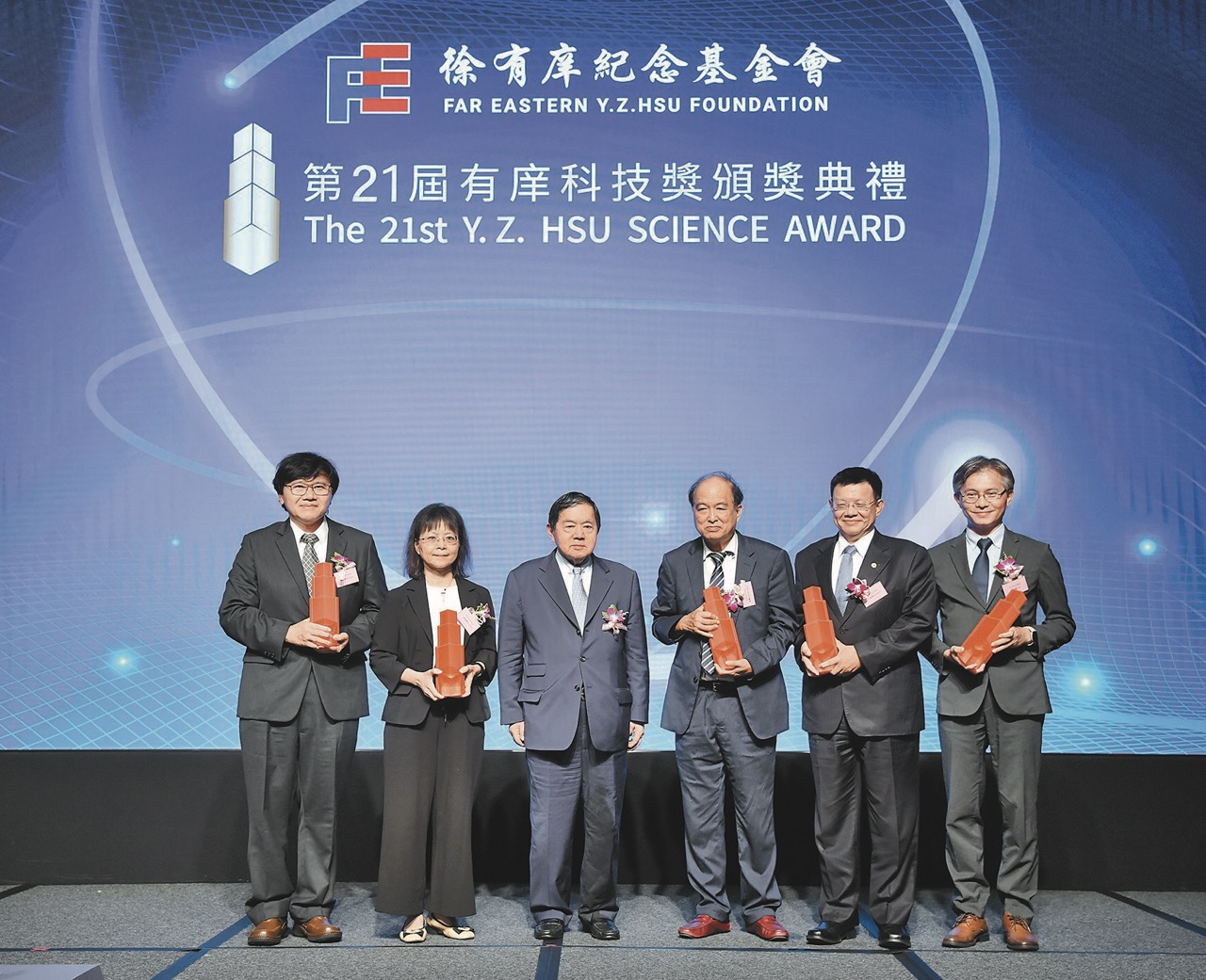 本會創會理事長蘇冠賓教授(右一)與頒獎人徐有庠紀念基金會徐旭東董事長(左三)及其他得獎者合影。