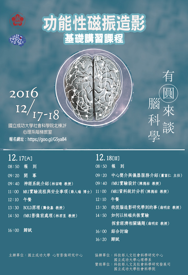 仍對上個月學會的「影像醫學」工作坊念念不忘嗎?那你更不能錯過12月17-18日由成功大學心智影像中心舉辦的「有圓來談腦科學」基礎講習課程!點我報名