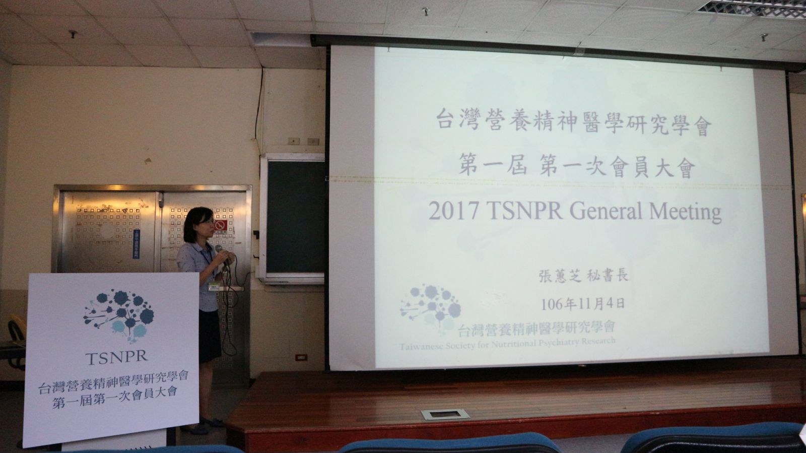 台灣營養精神醫學研究學會(TSNPR)第一屆第一次會員大會於106年11月4日中午召開,本次大會由學會蘇冠賓理事長開場致詞,並由學會張蕙芝秘書長向會員進行學會會務及財務報告。