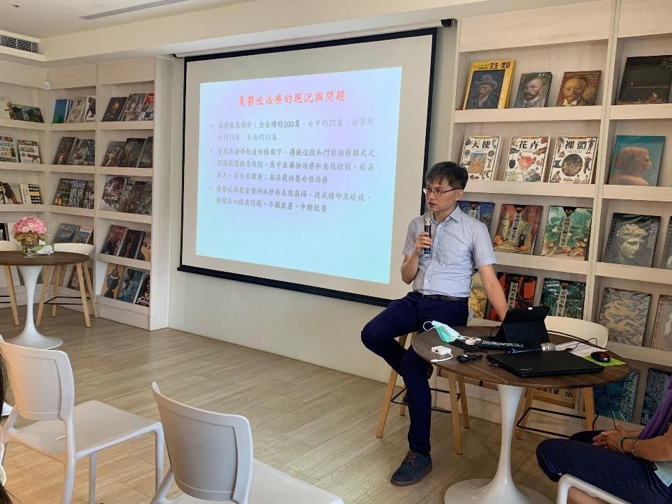 活動開場由理事長蘇冠賓 教授「全人精神醫療」談台灣健保制度下精神醫療面對的挑戰,未來如何能從實證出發,發展安全又有效的治療選項。透過藥物及非藥物的治療結合,發展營養治療、運動/正念瑜伽、園藝、音樂、藝術等多元且整合的身心治療方案。