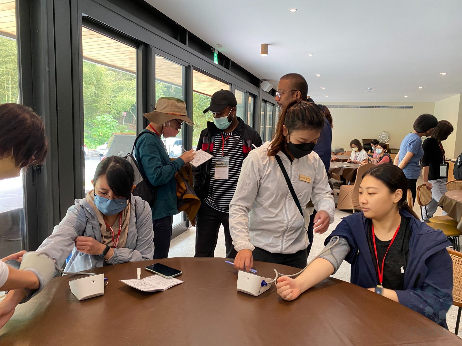 在森林療癒散步活動中,進行生理測量,以參與前、後測量數值,提供參與者壓力改善狀況參考。