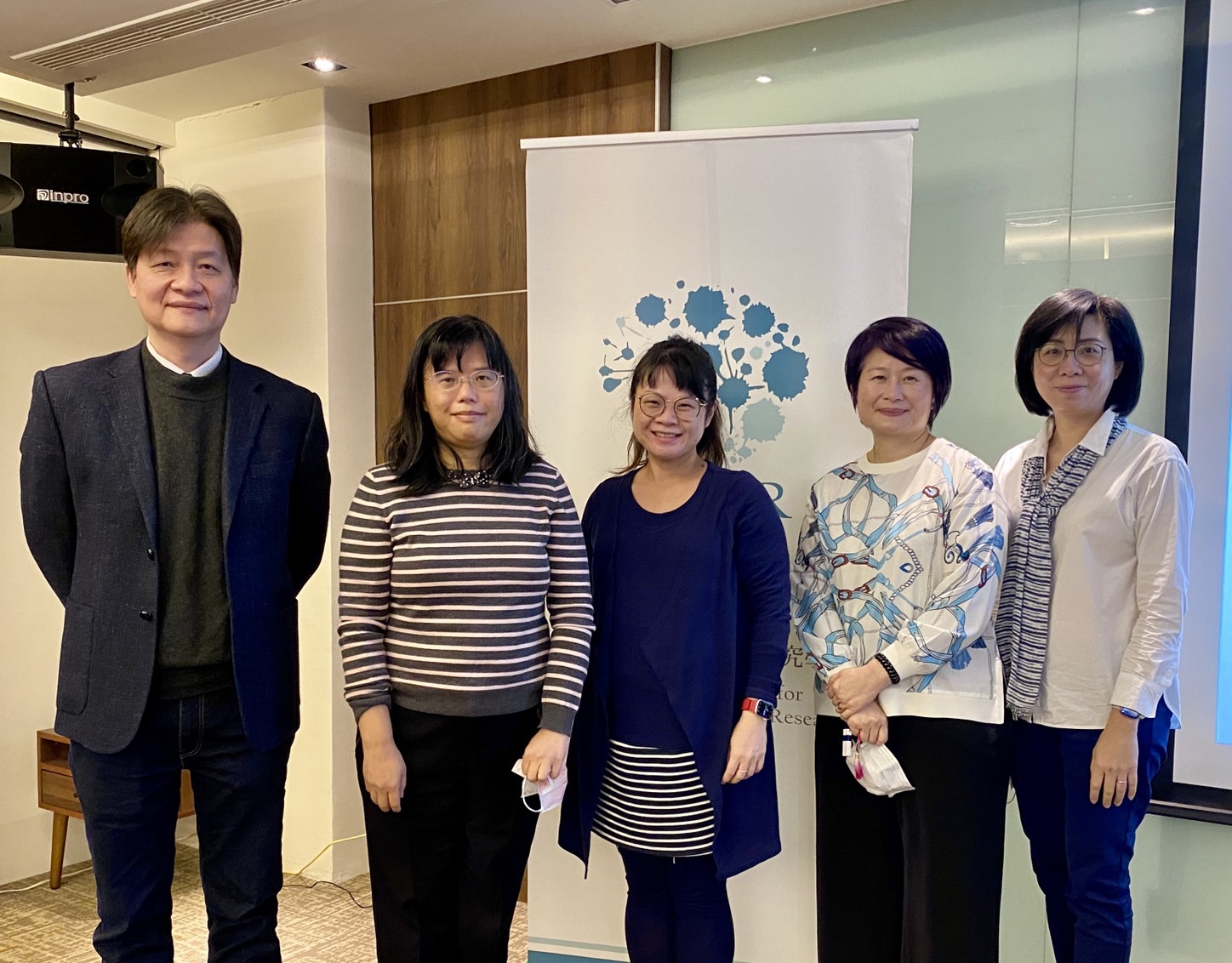 來賓講者合影:陳錦宏 教授、劉書岑 醫師、張倍禎 理事長、李昭慧 心理師、張蕙芝 博士(左至右)。
