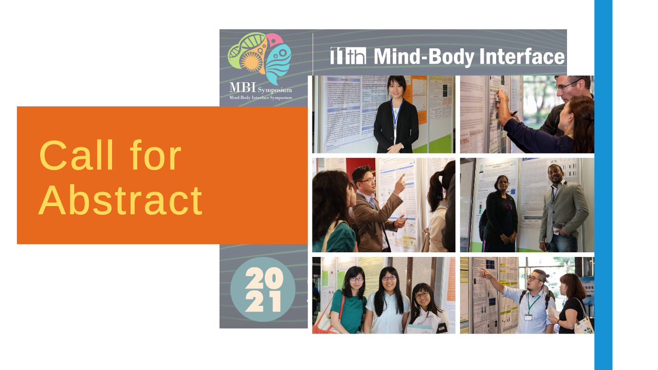 MBI Symposium國際會議以全文英進行,從腦科學研究出發以轉譯神經科學為主軸連結身心醫學相關的基礎研究與臨床醫療。透過跨領域的學術對話平台,吸引大腦精神健康的學術 (基礎醫學、免疫、心理、影像、分生、藥理、資訊、公衛等) 與臨床人員 (包括醫師、心理師、營養師、職能治療師、藥師、護理師、社工師等) 的參與,研討會的主題包括心理學、免疫學、代謝疾病、影像醫學、分子醫學、精神藥理學、東西方營養精神醫學、腸道與大腦的關聯、個人化醫療、生活型態 (飲食、運動、冥想、瑜伽、園藝等)、表達性藝術治療、健康促進、疾病管理、公衛流病及大數據等在精神醫學上的應用與研究。
